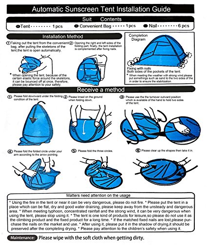 - [ln] Come with 6 steel ground stakes and sand bag pockets on both side panels to make the beach tent stable in windy days. Friendly customer service with 1 year warranty. [ln] [ln]