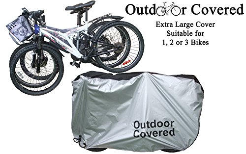 - [ln] Double stitching to keep water from seeping through. Covers the whole bicycle [and] wheels. [ln] [ln]